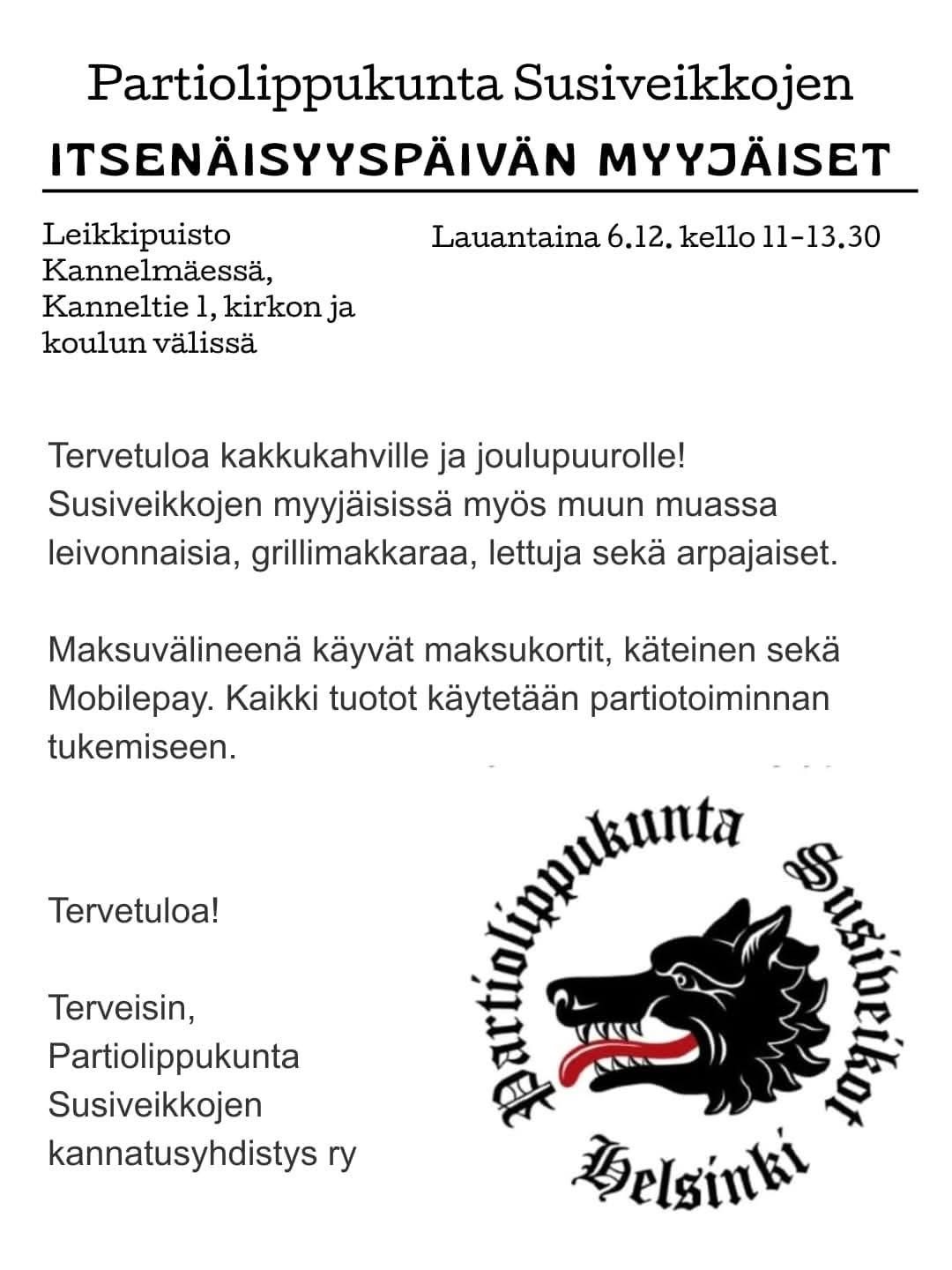 Susiveikkojen perinteiset itsenäisyyspäivän myyjäiset